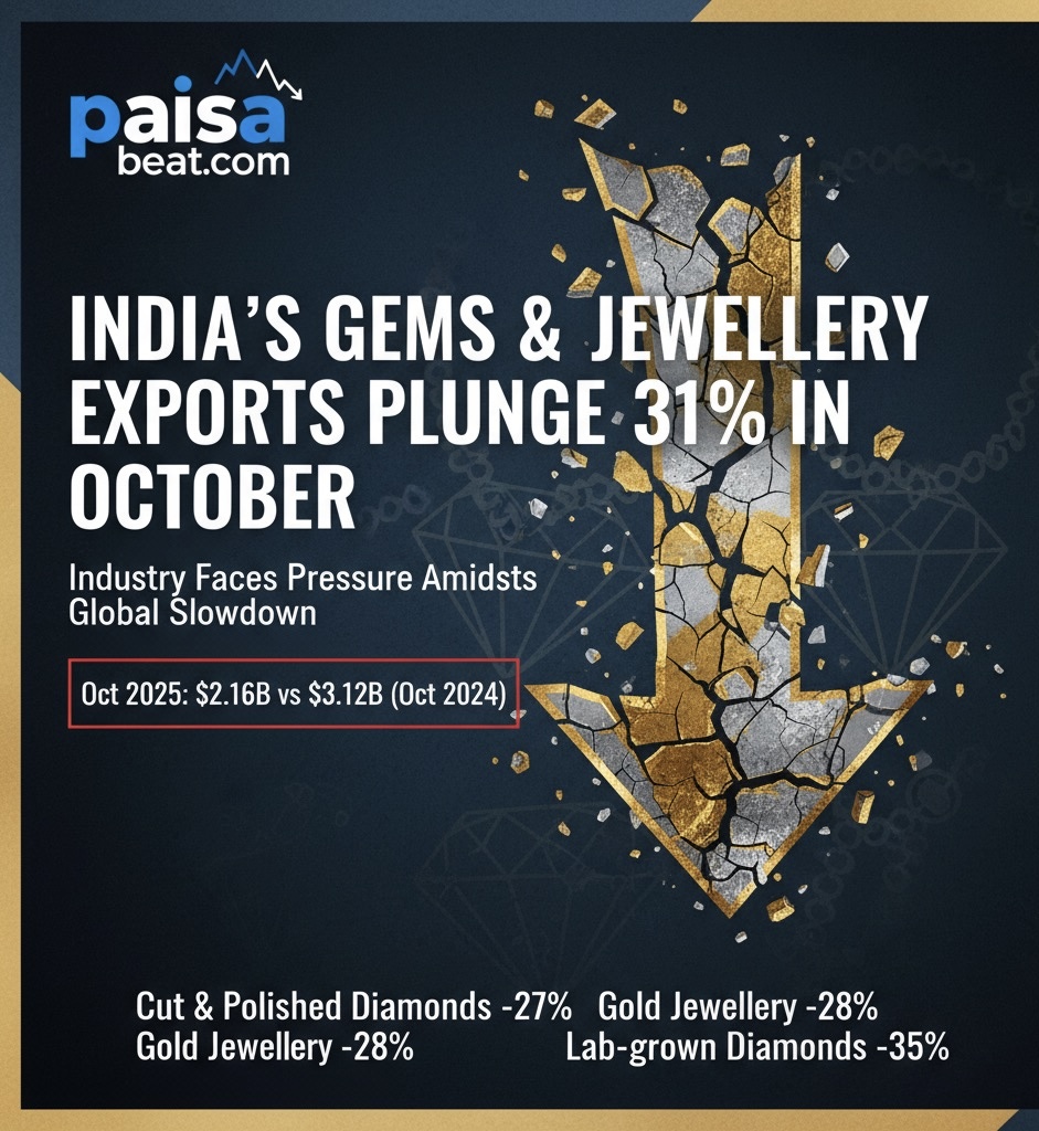 भारत के Gems & Jewellery निर्यात में अक्टूबर में 31% की भारी गिरावट