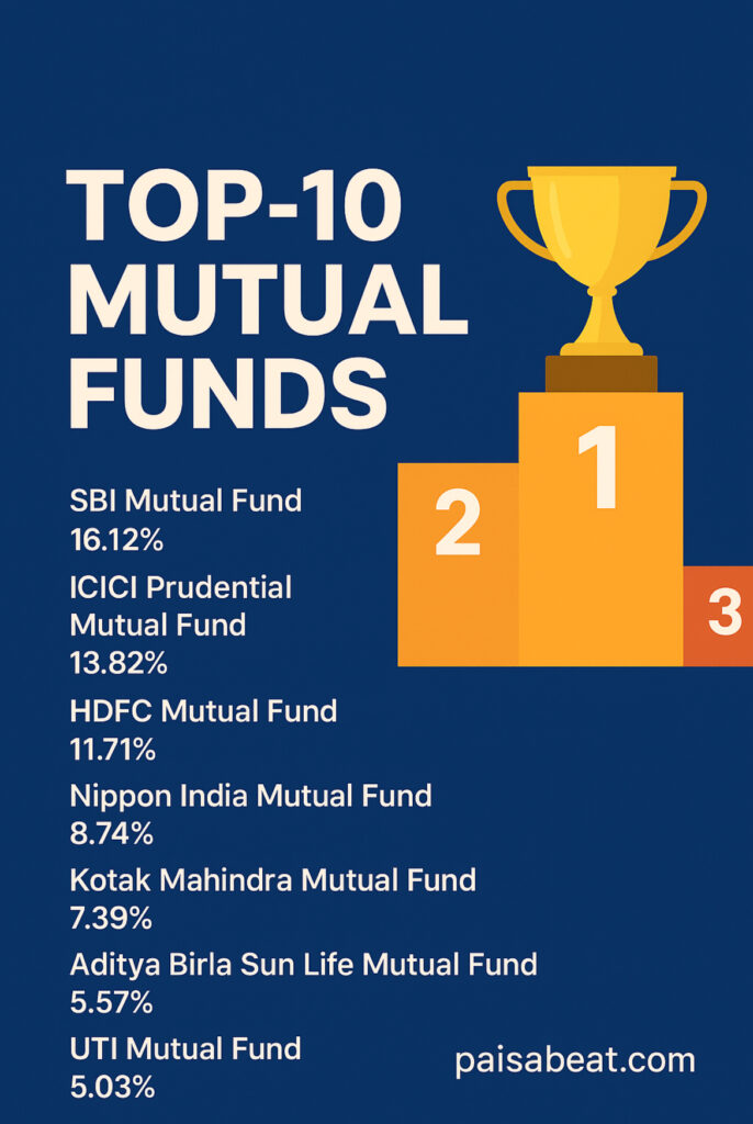 • SBI Mutual Fund की लगातार लीडिंग पोज़ीशन यह बताती है कि सरकारी क्षेत्र की विश्वसनीयता और व्यापक नेटवर्क निवेशकों को आकर्षित कर रहा है।